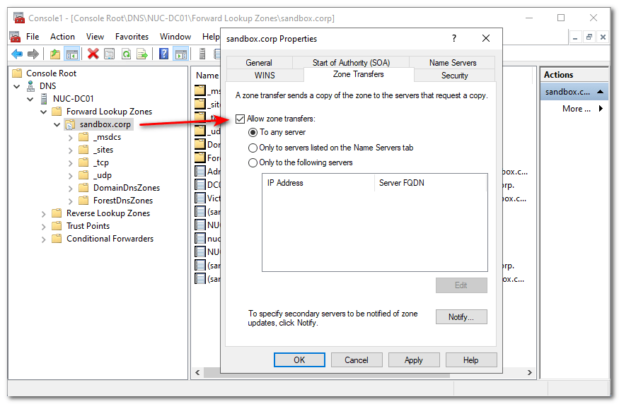• Create alias (cname) and allow Domain Zone Transfer