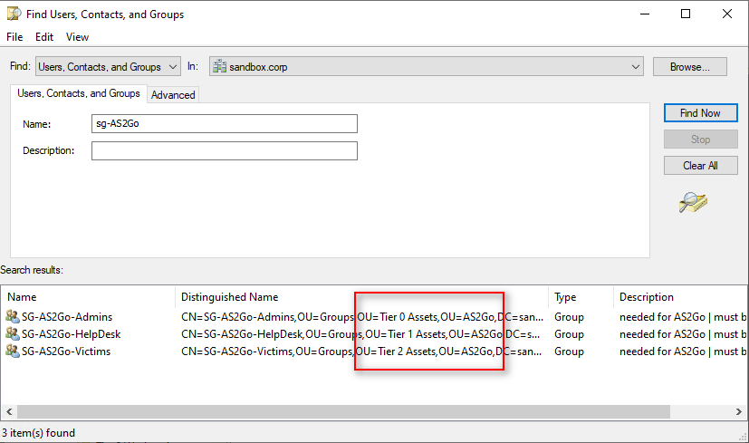 Finally set the the DENY right on the OU AS2Go\Tier 0 Assets\Groups for trustee SG-AS2Go-Victims