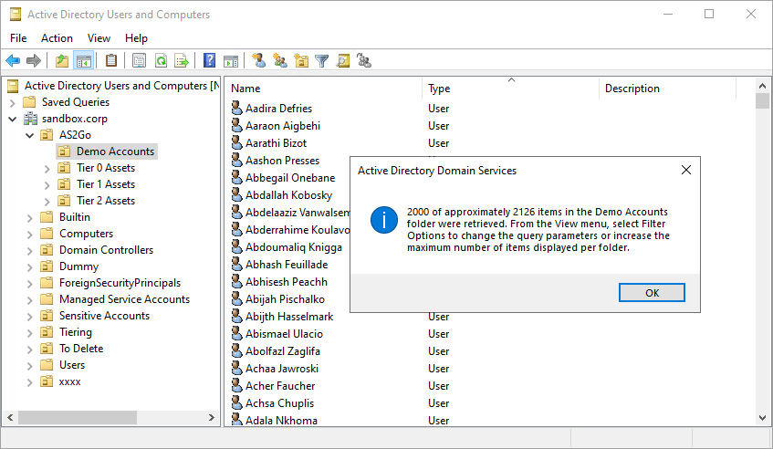 To create thousands of demo accounts I used from GitHub the RobBrideman – ADImporter ⬈